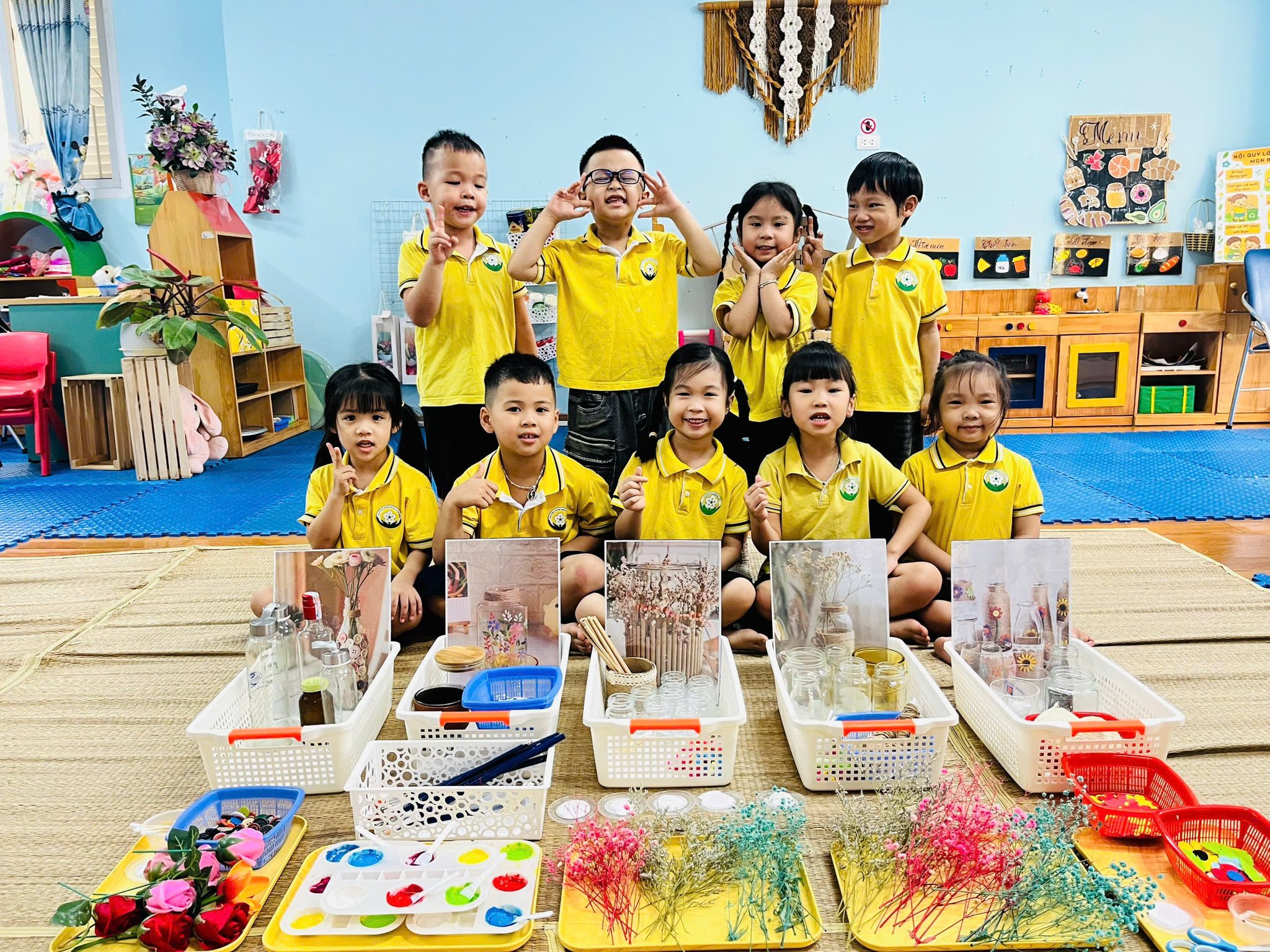 Xây dựng môi trường giáo dục lấy trẻ làm trung tâm, đảm bảo môi trường sạch sẽ, an toàn và thân thiện. Tạo nhiều góc mở, sử dụng tối đa sản phẩm của trẻ trong việc trang trí môi trường lớp học cũng như sáng tạo đồ dùng cho trẻ học tập và vui chơi.